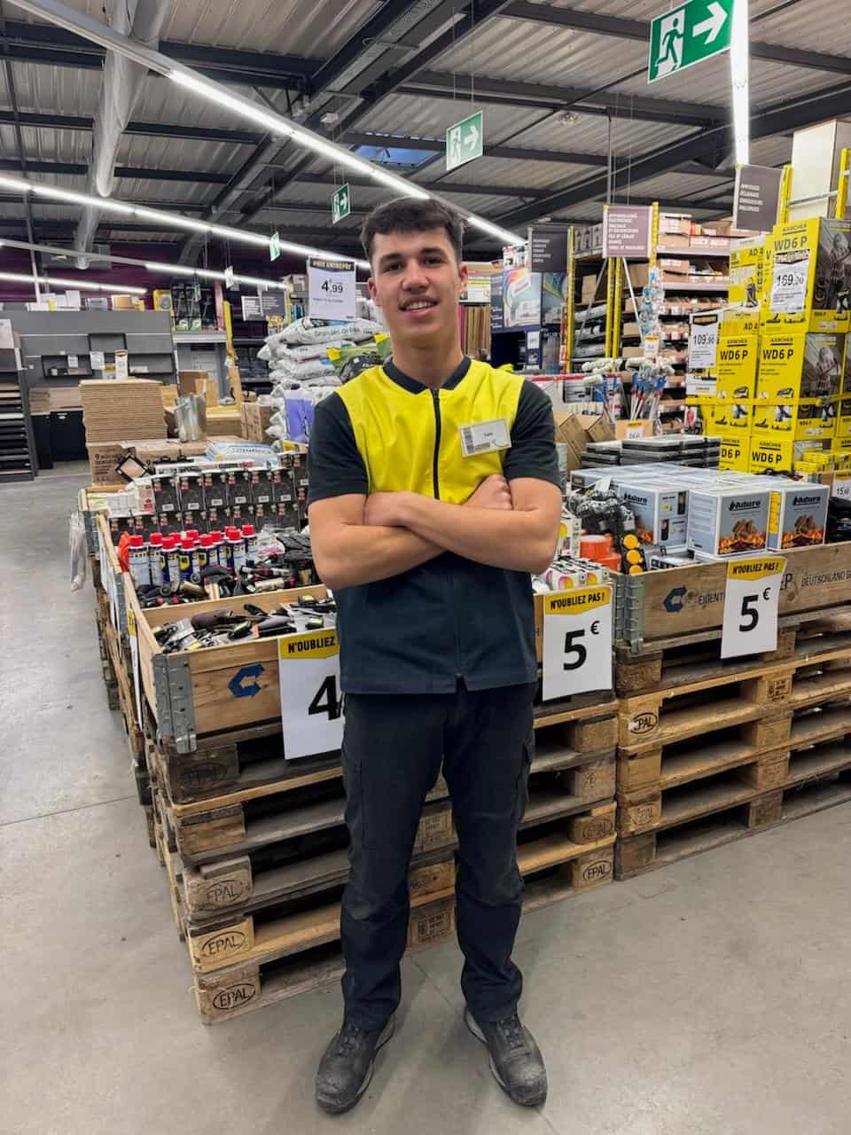 J’ai 18 ans. Je suis en alternance à l’Entrepôt du Bricolage depuis un an et demi sur le poste d’employé polyvalent. J’ai commencé par un Bac pro Métiers du Commerce et de la Vente, et aujourd’hui je poursuis en BTS MCO (Management Commercial Opérationnel), toujours en alternance.