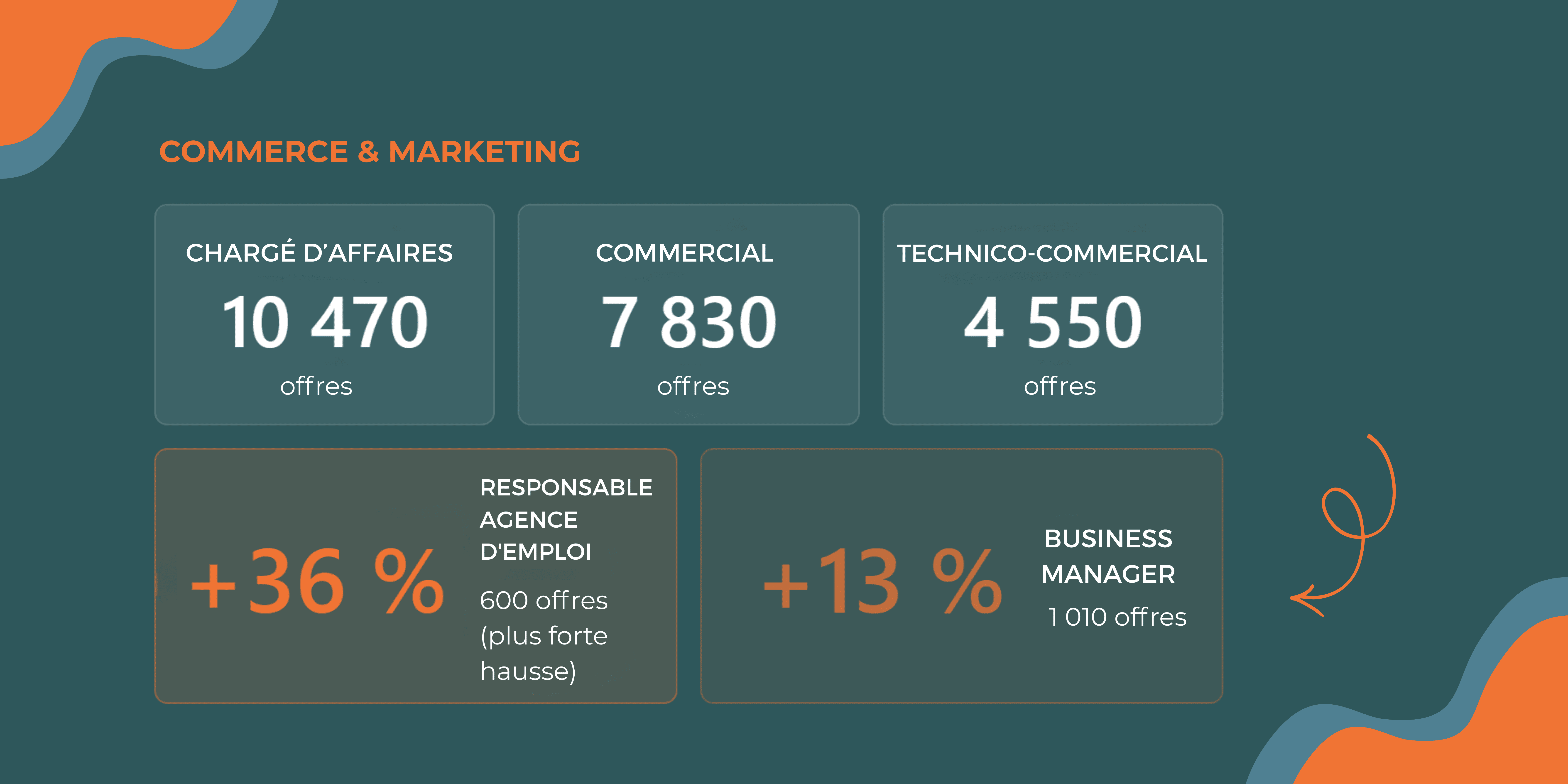 Le métier responsable d’agence d’emploi enregistre lui la plus forte hausse de toute l’étude avec +36 % en un an. Le business manager progresse de 13 %, et le directeur commercial et marketing de 6 %. Ces évolutions reflètent une vraie transformation des fonctions commerciales, de plus en plus tournées vers le digital et les enjeux de responsabilité des entreprises.
